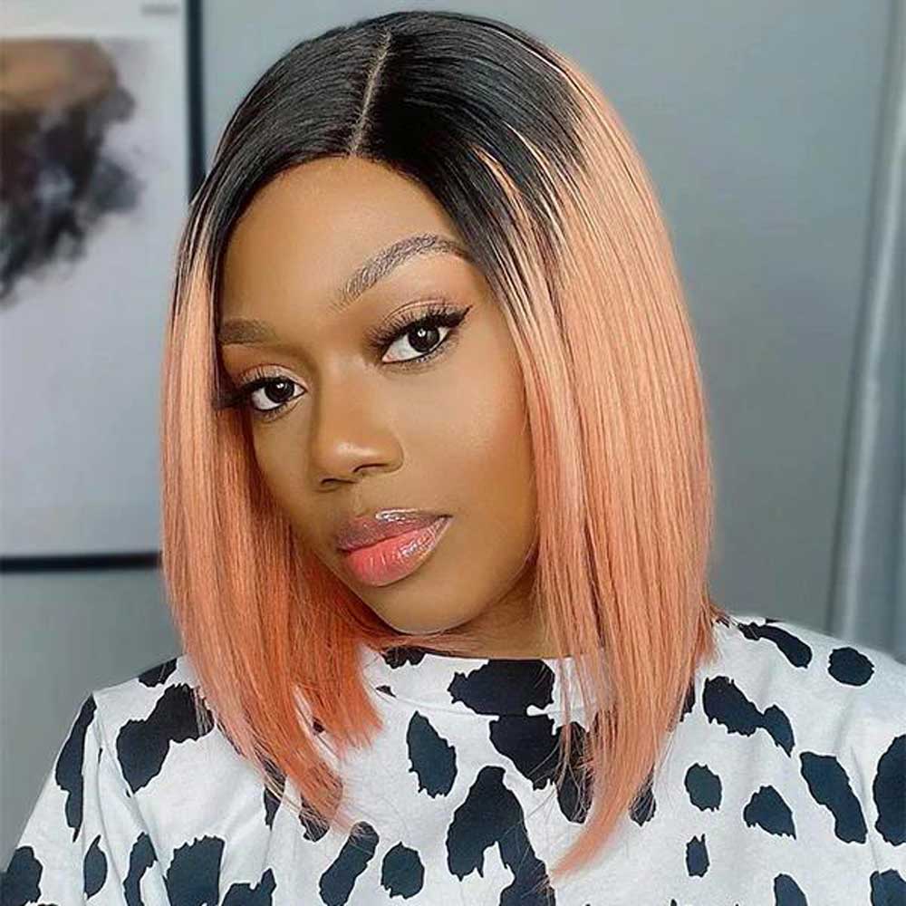 【Ella】Ombre Pink Short Bob Wig Brazilian Human Hair Ombre Grey/Pure Burgundy/Pure Green Bob Wigs 13X4X1 and 4X4X1 T Part Lace Wig