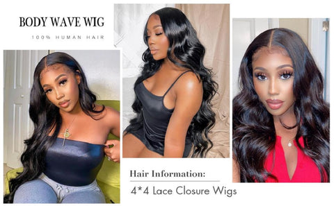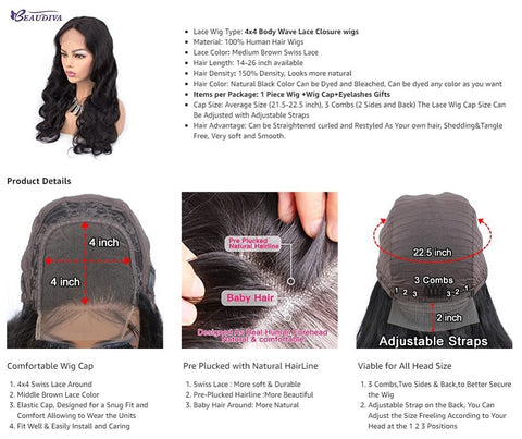 Beaudiva Human Hair Closure Wig 4×4 Body Wave Wigs Pre Plucked Bleached Knots with Baby Hair